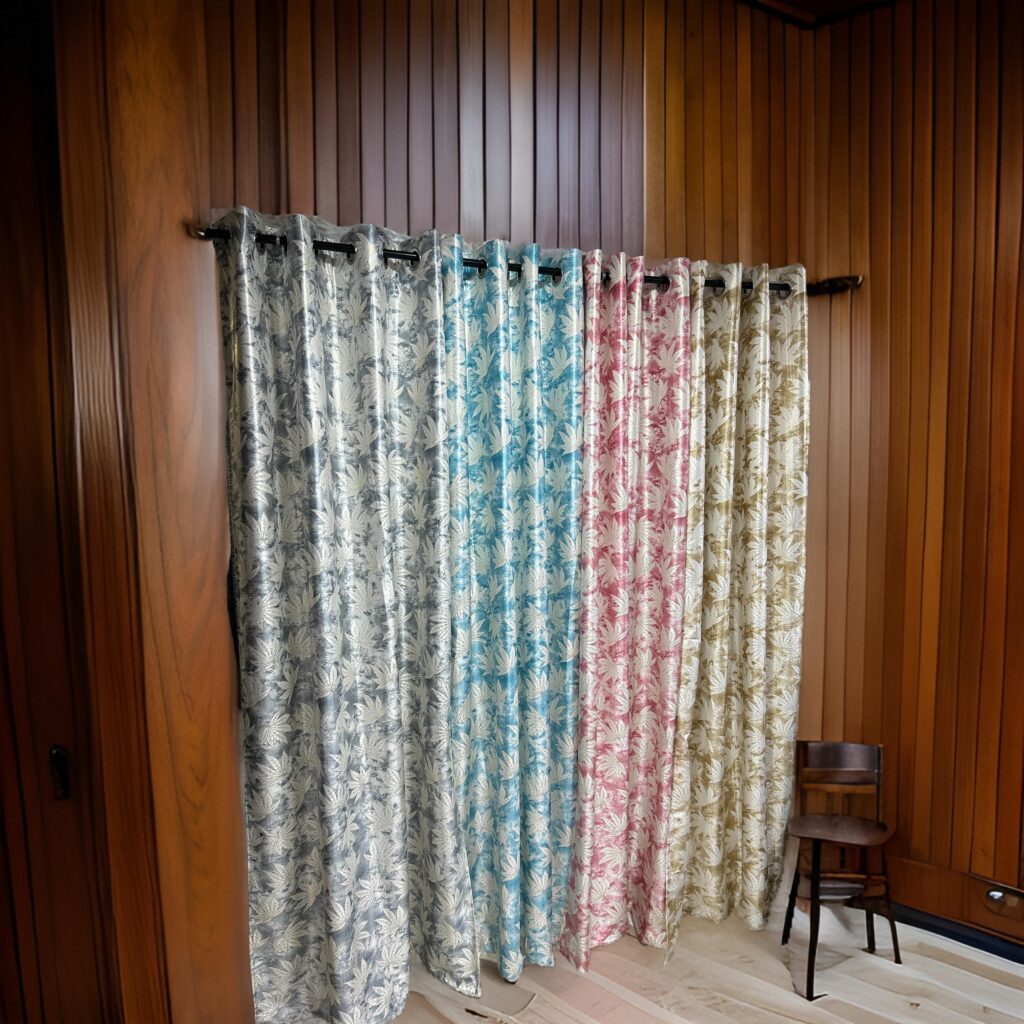 These foil-printed knitted curtains are available in a range of modern colors including soft silver, lively blue, elegant beige, and rich rose. Such versatility ensures that the collection suits both contemporary and classic decor styles.